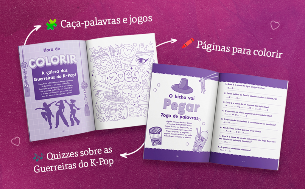 Felizmente, enquanto 2026 não chega, os fãs já podem mergulhar de cabeça nesse universo. Isso porque o fenômeno agora chegou às livrarias com o Livro de Atividades (Não Oficial) Guerreiras do K-pop!