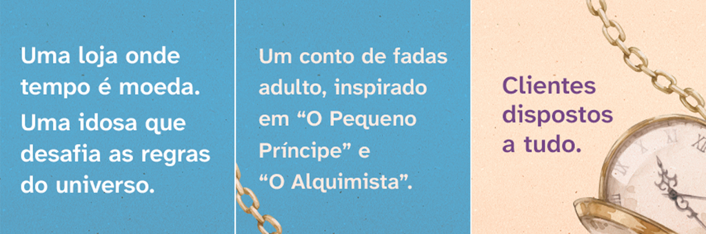 A narrativa não tem um protagonista fixo: a Loja é o centro de tudo. Nem mesmo sobre a senhora que a administra o narrador fornece mais informações, somente o necessário relacionado às atividades na loja. No decorrer da leitura, diversas pessoas fazem contratos com a loja, pedem seus empréstimos de tempo e, ao retornarem do passado, pagam com tempo futuro — ou seja, um período de sua própria vida. Alguns fazem a escolha certa e voltam para o presente satisfeitos por terem arrumado o que haviam errado no passado. Outros tentam até “sabotar” o universo, ficando no passado ou fazendo algo de diferente do combinado… e acabam pagando muito caro por isso, de forma fatal.