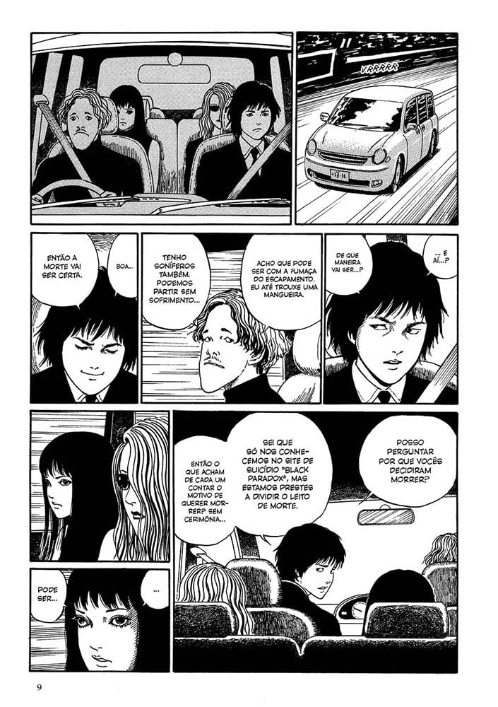 Em um ritmo que vai crescendo ao longo das páginas, o quadrinho oriental apresenta um grupo de quatro desconhecidos conectados em razão de um desejo em comum: a vontade de cometer suicídio.